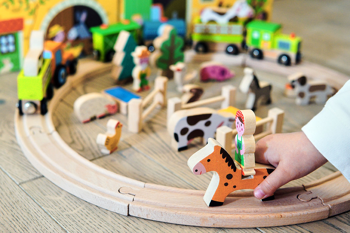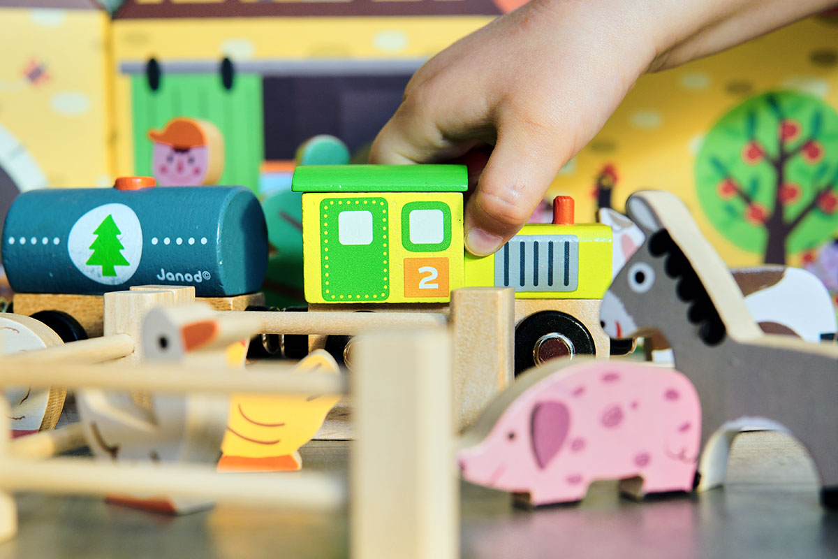 Jeśli szukacie sprawdzonego pomysłu i inspiracji na prezent wielkanocny zarówno dla dziewczynki jak i chłopca mamy coś dla Was – kolejka drewniana Farma francuskiej marki Janod.