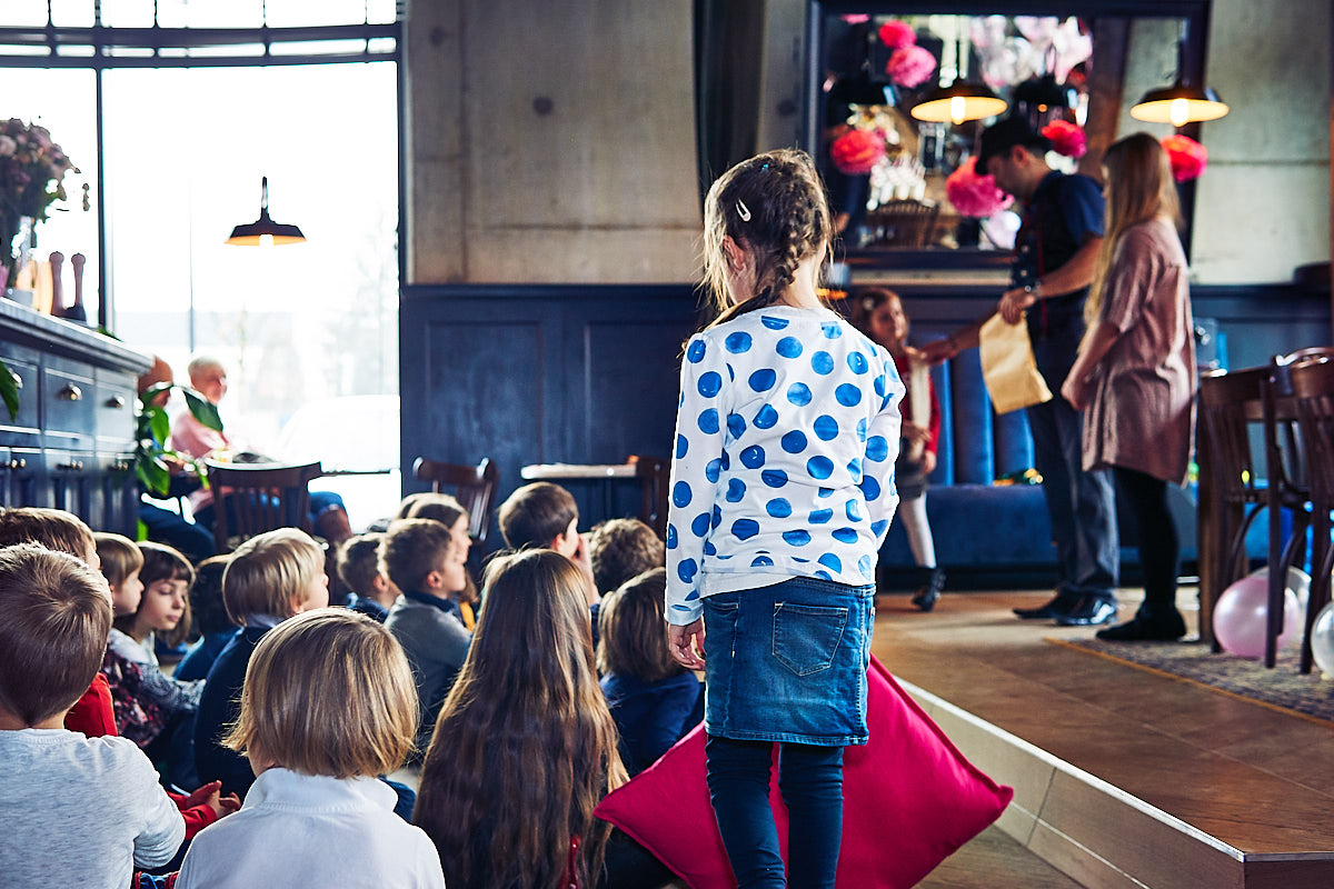 Wyraźny podział na scenę i widownię sprawia, że podczas gdy rodzice ucztują, ich pociechy czują się jak w prawdziwym teatrze. Warto wspomnieć także, że po przedstawieniu maluchy także mają możliwość spróbowania, specjalnie dla nich skomponowanego obiadowego menu ze świeżych i naturalnych składników.