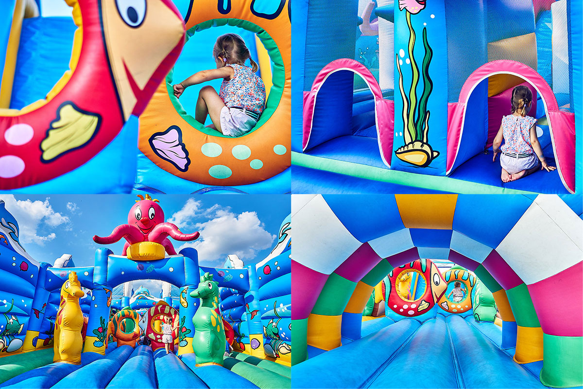 To plac zabaw z wielkimi dmuchańcami z podwodnej krainy i karuzelą także dla maluchów już od 3 lat. Każdy znajdzie tutaj coś dla siebie. Są wielkie zjeżdżalnie, ruchomy statek, olbrzymie kule i kilka mniejszych dmuchanych obiektów dla najmłodszych.