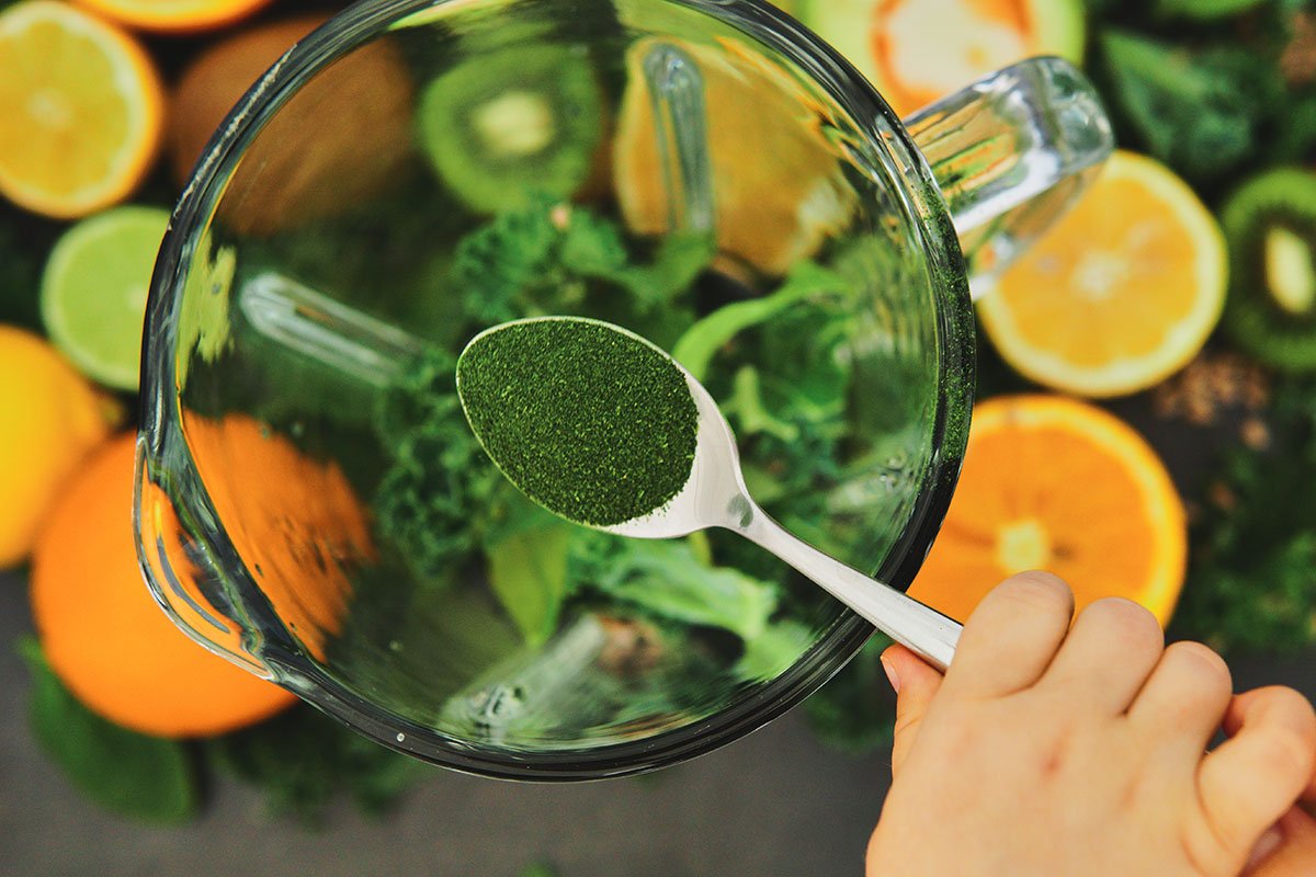 Przeciwbakteryjny, zielony koktajl ze szpinakiem i awokado – skoncentrowane źródło potasu, magnezu, cynku, witamin z grupy B, witaminy C , błonnika, folianów, antyoksydantów.