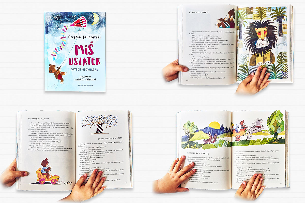 Uszatek w 2017 roku obchodzi 60 urodziny. Z tej okazji Nasza Księgarnia proponuje nam specjalne wydanie przygód mądrego misia, zawierające zabawne i wzruszające opowiadania z przepięknymi kolorowymi ilustracjami Zbigniewa Rychlickiego, laureata prestiżowej międzynarodowej nagrody – Złotego Medalu im. H.Ch. Andersena.