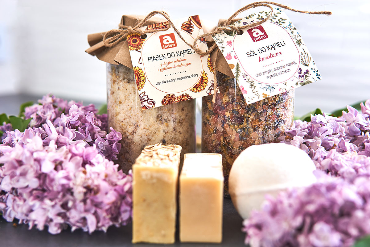 Poza bogatym wyborem naturalnych mydeł Ajeden proponuje nam ręcznie tworzone sole do kąpieli oraz kule kąpielowe. Kąpiel z dodatkiem aromatycznej soli kwiatowej lub cynamonowo-cytrusowej działa rozgrzewająco, pobudzająco i antybakteryjnie. Prawdziwe SPA w domowym zaciszu.