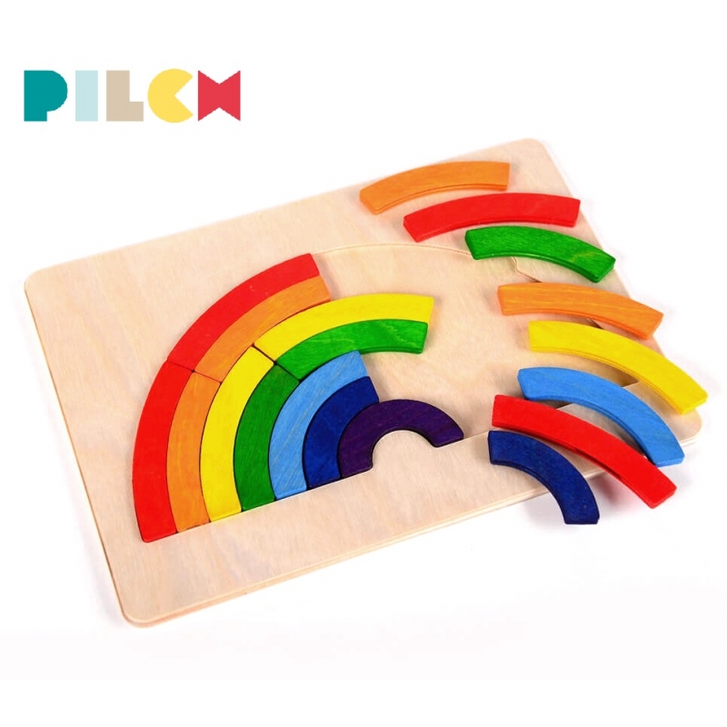 Drewniana Tęcza Plich to wyjątkowo kreatywne puzzle, które zajmą malucha na dłużej. Układanka wspiera rozwój wyobraźni i ma nieskończenie wiele zastosowań.