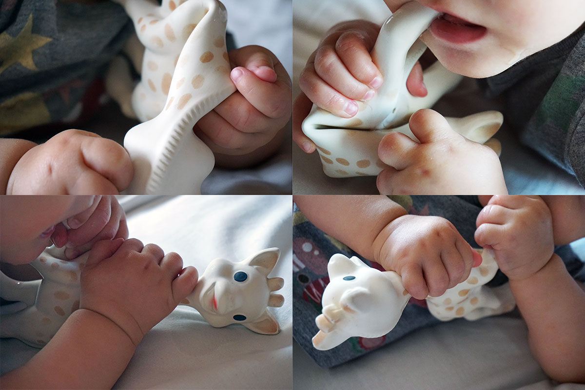 Aktualnie nos i długie nogi Sophie, które są łatwe do złapania małą rączką, są naszym lekarstwem podczas ząbkowania.